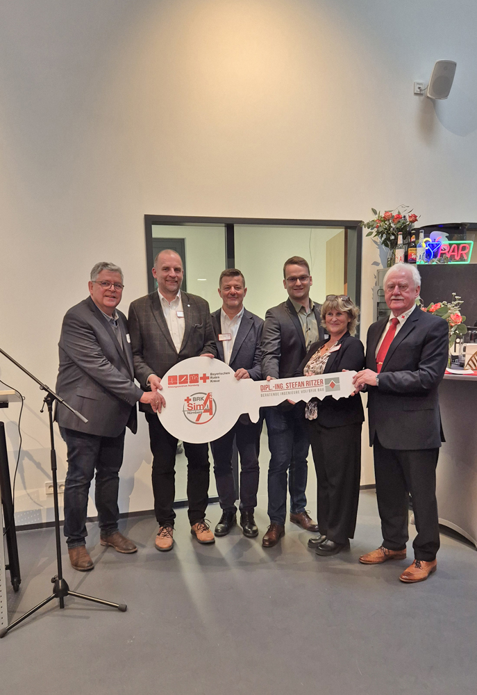 Stefan Ritzer Inhaber IBR, Helmut Deinzer Leiter Bildungszentrum und Schulleiter, Armin Kohler Leiter Simulationszentrum, Christoph Schmidt Projektleiter IBR, Frau Lischka Geschäftsführerin BRK Kreisverband Nürnberg Stadt, Hermann Guth Vorstandsvorsitzender