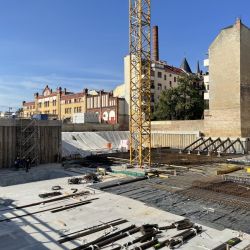 Auf dem ca. 13.000 m² großen Grundstück in Berlin-Kreuzberg entstehen Eigentums- und Mietwohnungen, Studentenapartments und geförderte Wohnungen sowie ein Bürohaus, eine Kita mit 60 Plätzen und Gewerbe.