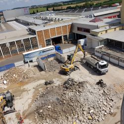 Das Bauvorhaben ist ein Ersatzneubau. Er wurde innerhalb der bestehenden Fabrikflächen errichtet, daher musste die Baustelleninstallationsfläche auf das absolute Minimum reduziert werden, um den Betrieb nicht zu behindern.