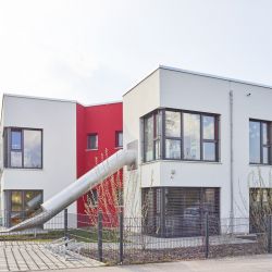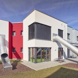 Die Kindertagesstätte für 4 Krippengruppen und 4 Kindergartengruppen insgesamt 148 Kinder für das Bayerische Rote Kreuz wurde in einem Wohngebiet im Osten von Schwabach errichtet. Das Grundstück ist im bestehende Bebauungsplan extra für eine Nutzung als Kindergarten oder Kinderkrippe vorgesehen.