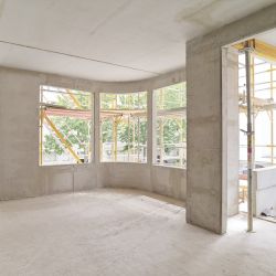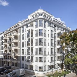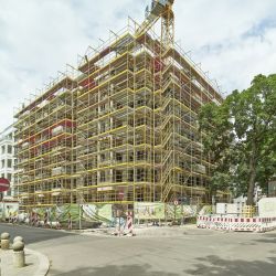 Neubau von einem 7-stöckigem Eckgebäude mit 37 Eigentumswohnungen in massiver Bauweise.